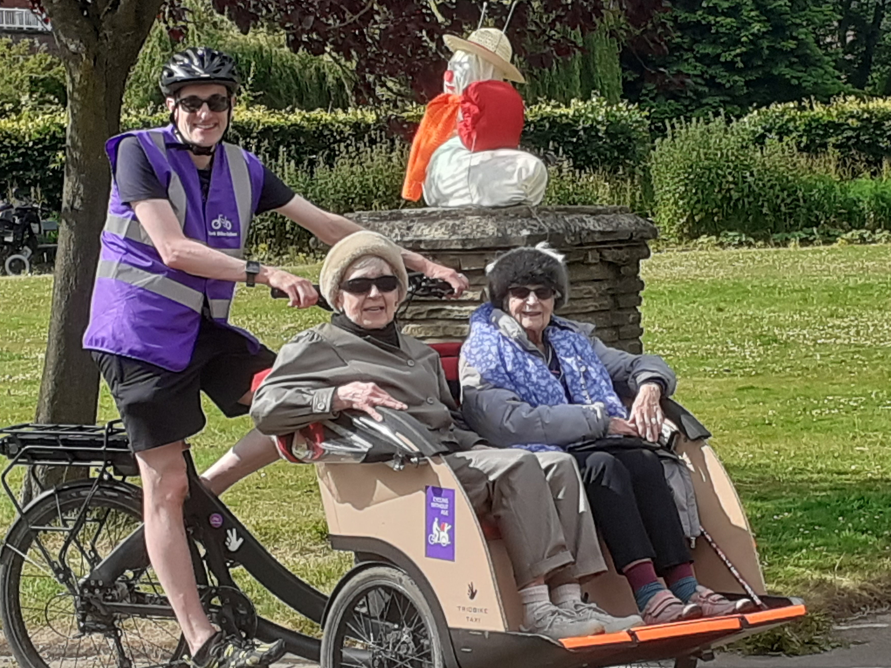We have a small community fleet of 7 bikes – 2 Cycling Without Age Triobike Taxis, 1 electric bike and 4 easy to use beginner bikes, plus child-carrying equipment. Most of the fleet are stored and looked after free of charge, thanks to the generous support of our sponsor, Cycle Heaven Bike Shop.