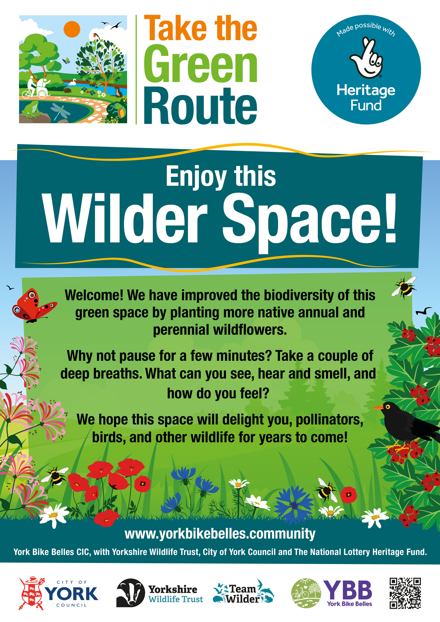 As part of our Take the Green Route project, we are improving the biodiversity of 3 community spaces along green routes in York. We are working in partnership with City of York Council and #TeamWilder of Yorkshire Wildlife Trust.